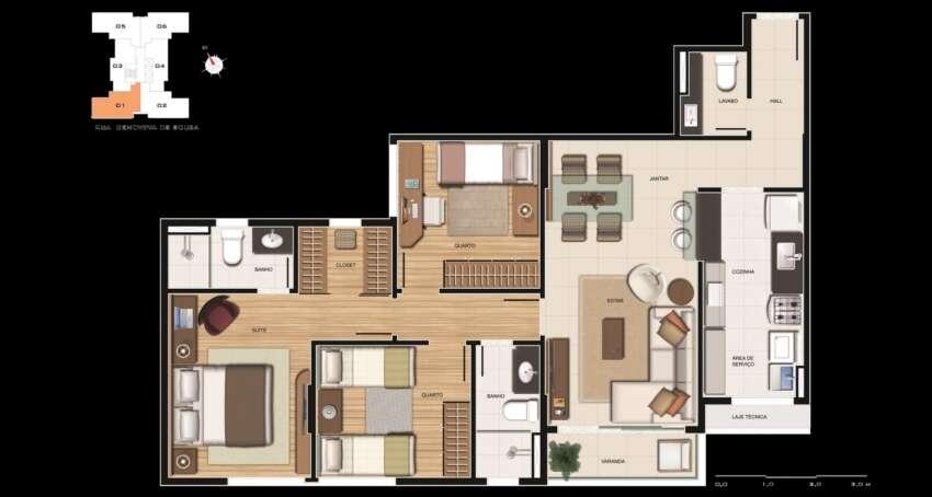 Área total de 84m² e 84m² de área útil.